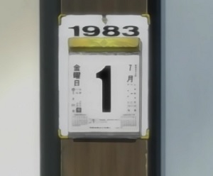 梨花ちゃんがめくった、日めくりカレンダーの日付は……「昭和58年7月1日」。
